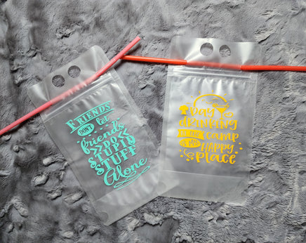 Get yourself and friends a reusable sippy pouch. Fill it, sip it, and reuse it. Great for adults and kids of all ages. Order one or 100. Great for parties and get together's. Order a designed one or design your own. Either way people will luv them.